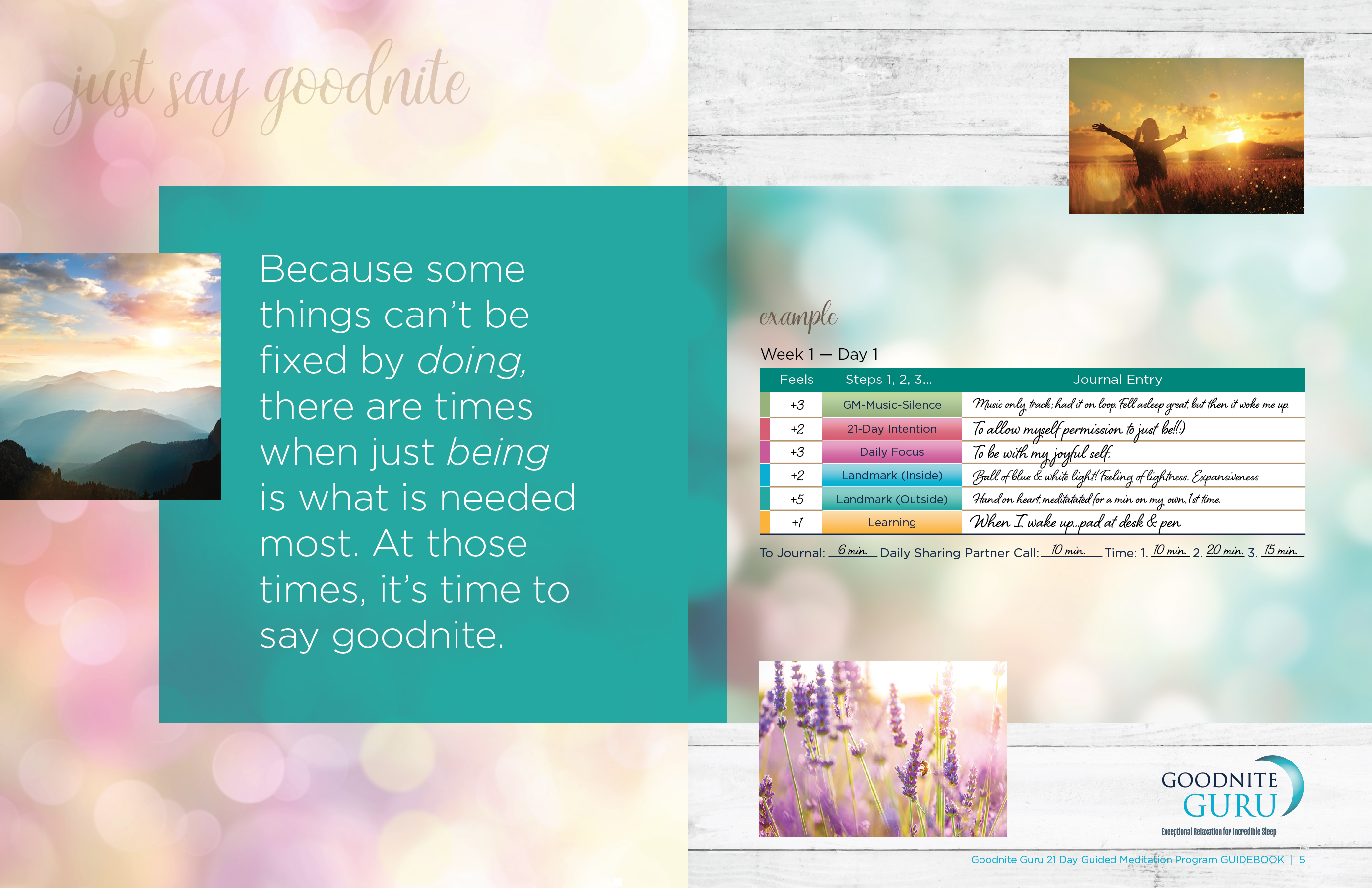 - Guidebook full of helpful resources plus journal space for you to reflect upon your sleep experience each day;
